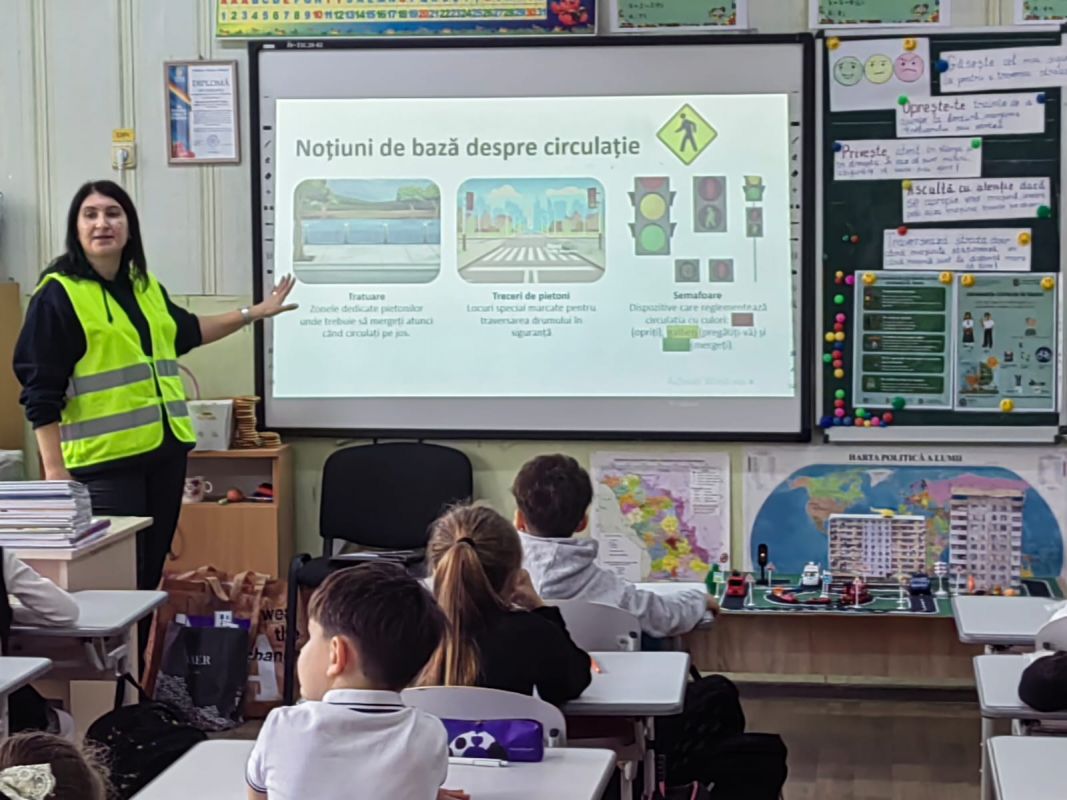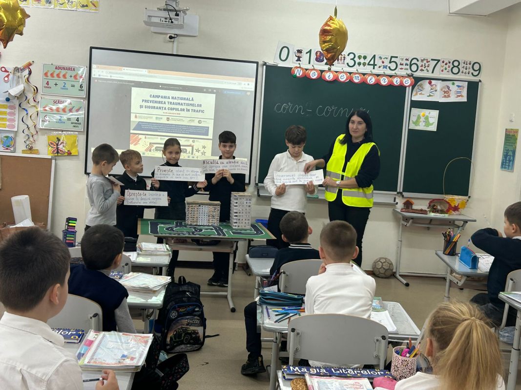Exerciții practice au realizat și elevii claselor primare de la Liceul Teoretic „Mihail Sadoveanu” din orașul Hîncești, care au făcut cunoștință cu principalele indicatoare rutiere și au participat la activități interactive privind modul corect de traversare a străzii și comportamentul responsabil al pietonilor. Activitatea a avut rolul de a consolida cunoștințele teoretice și de a forma deprinderi practice sigure încă de la vârste fragede.